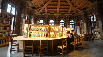 10月6日,游客在沈阳奉天工厂文创园内的城市书房内阅读。