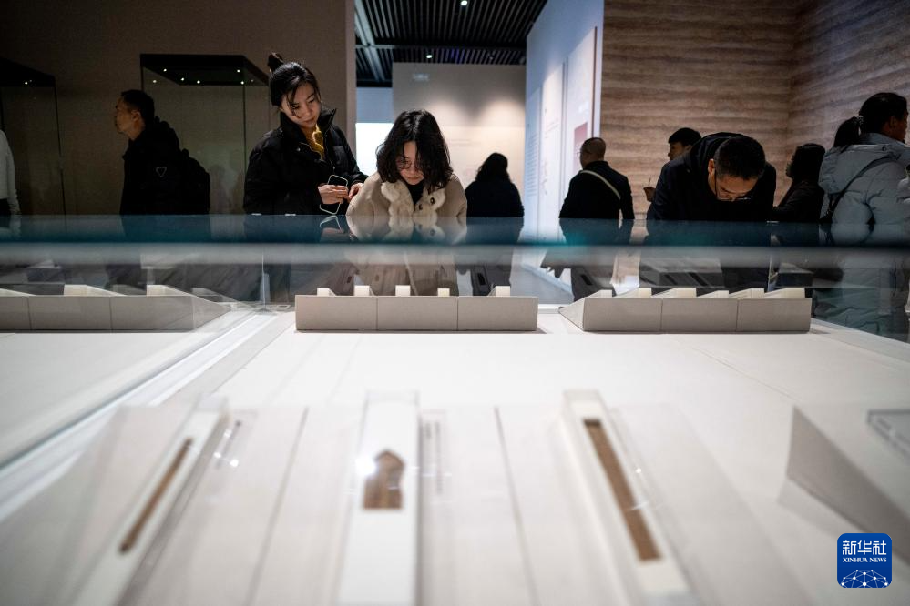 12月28日,参观者参观展出的居延汉简。