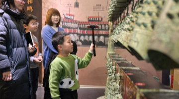 1月5日,嘉宾在活动现场展示同步发行的丙午年生肖纪念印章。