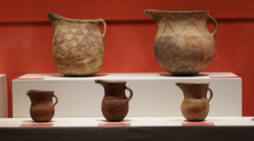 1月17日,上海博物馆讲解员为参观者讲解马桥遗址出土文物。