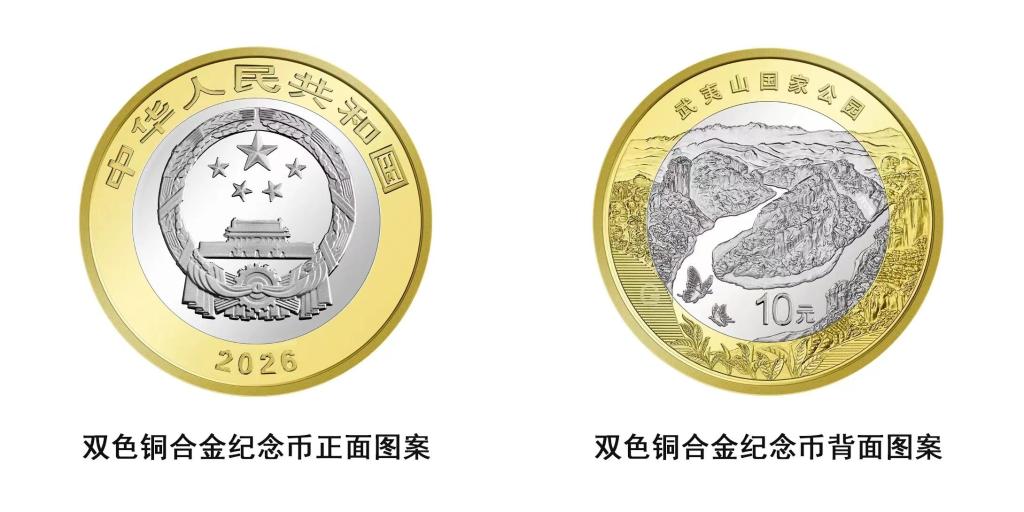 中国人民银行定于2026年4月3日起陆续发行武夷山国家公园纪念币。武夷山国家公园纪念币共3枚,其中双色铜合金纪念币1枚,金质纪念币1枚,银质纪念币1枚,均为中华人民共和国法定货币。