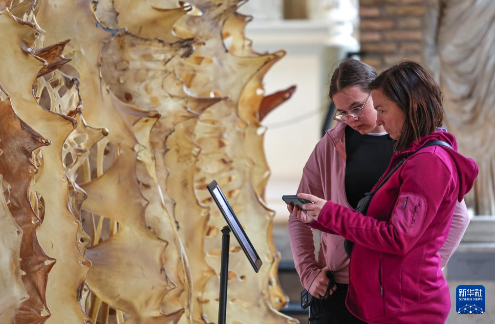 4月1日,观众在意大利罗马国家博物馆戴克里先浴场观看特别展览“邬建安:变形记”的展品。