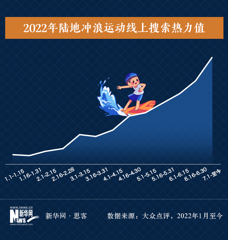 大众点评数据显示,6月以来,陆地冲浪的搜索量环比年初上涨12倍,关于陆地冲浪相关的评价增幅达到了380%。在美团上相关培训课程的线上订单量较年初暴涨19倍,护具护膝的外卖订单量同比去年增长127%。