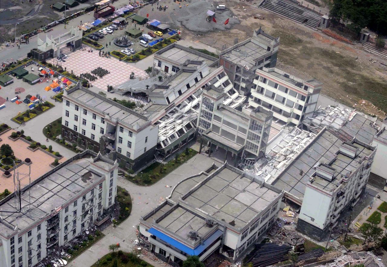 ▲2008年5月16日,航拍的地震后的汶川县映秀镇漩口中学。新华社记者 陈树根 摄