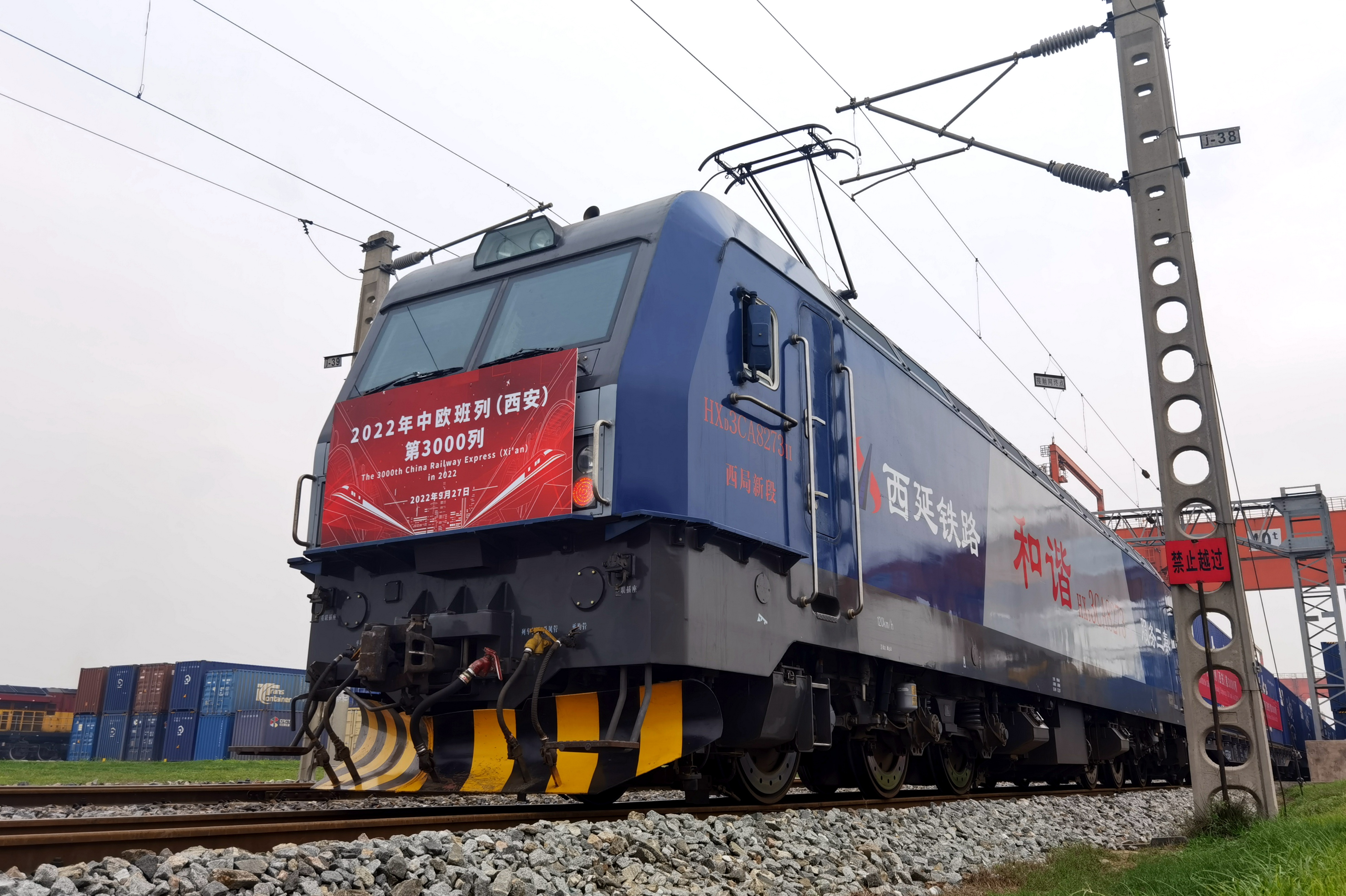 2022年中欧班列长安号第3000列在西安国际港站准备发车(2022年9月27日摄) 新华社发