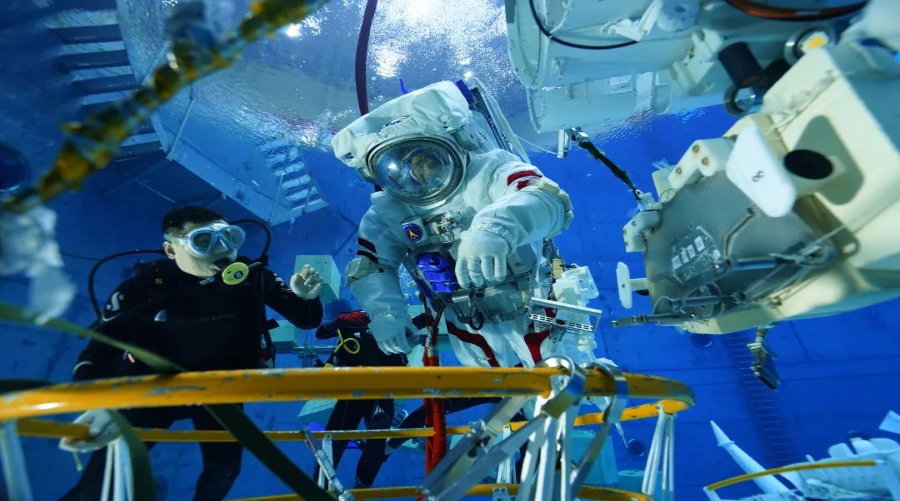 ▲中性浮力水槽训练模拟空间操作(图源:我们的太空)