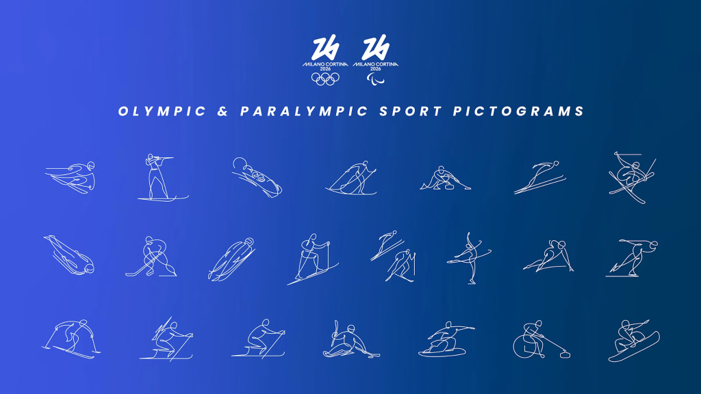 本届冬奥会的体育图标也同步发布,包括16枚冬奥会体育图标和6枚冬残奥会体育图标,每枚图标代表一个体育项目。这些标识是米兰冬奥组委和国际冬季单项体育组织共同设计的,每枚图标都捕捉了“最纯粹的人类姿态”,展现出运动项目的精髓,精致而艺术,充满动感与活力。