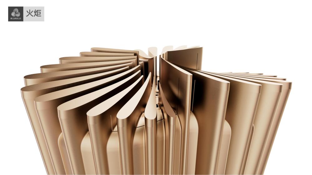 外观取平面会徽纵向拉伸,并作旋转扭变
