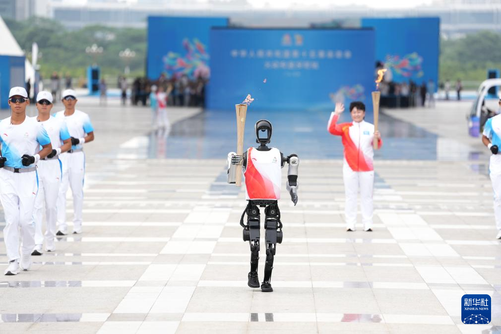 11月2日,火炬手人形机器人“夸父”在传递火炬。