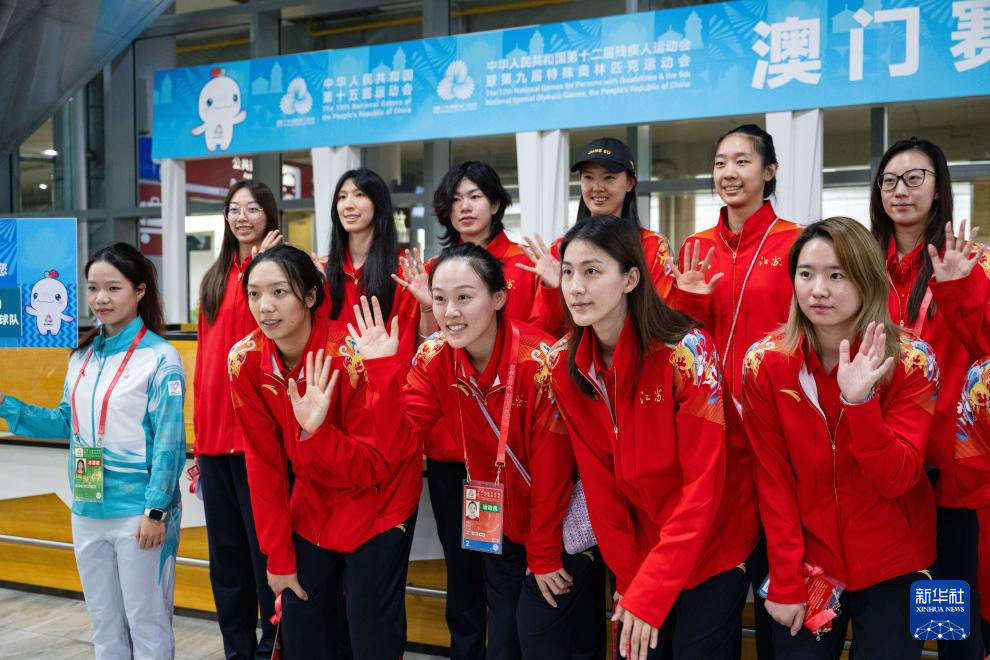 当日,第十五届全国运动会女子排球成年组参赛队伍陆续抵达澳门。女排成年组比赛将于7日开赛。