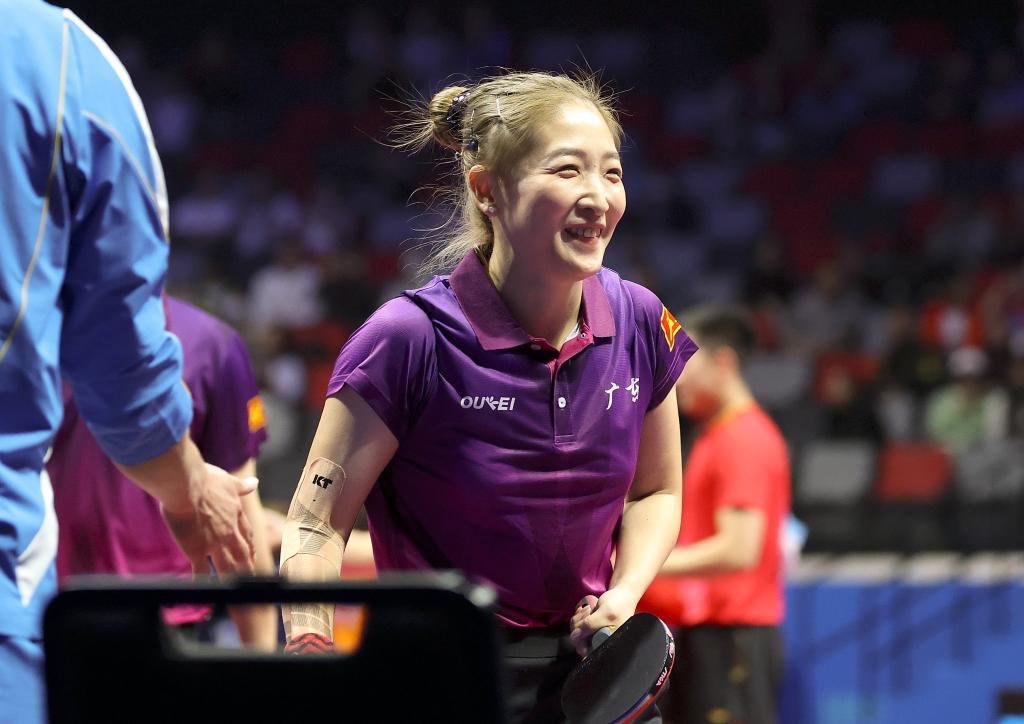 2025年11月13日,刘诗雯在第十五届全国运动会乒乓球混合双打半决赛后。 新华社记者 梁旭 摄