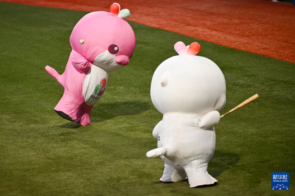 11月20日,江苏队球员庆祝队友在比赛中打出本垒打。