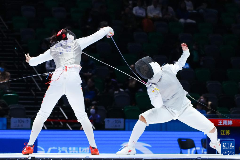 11月20日,江苏队选手石玥(左)和广东队选手宋玥在比赛中。