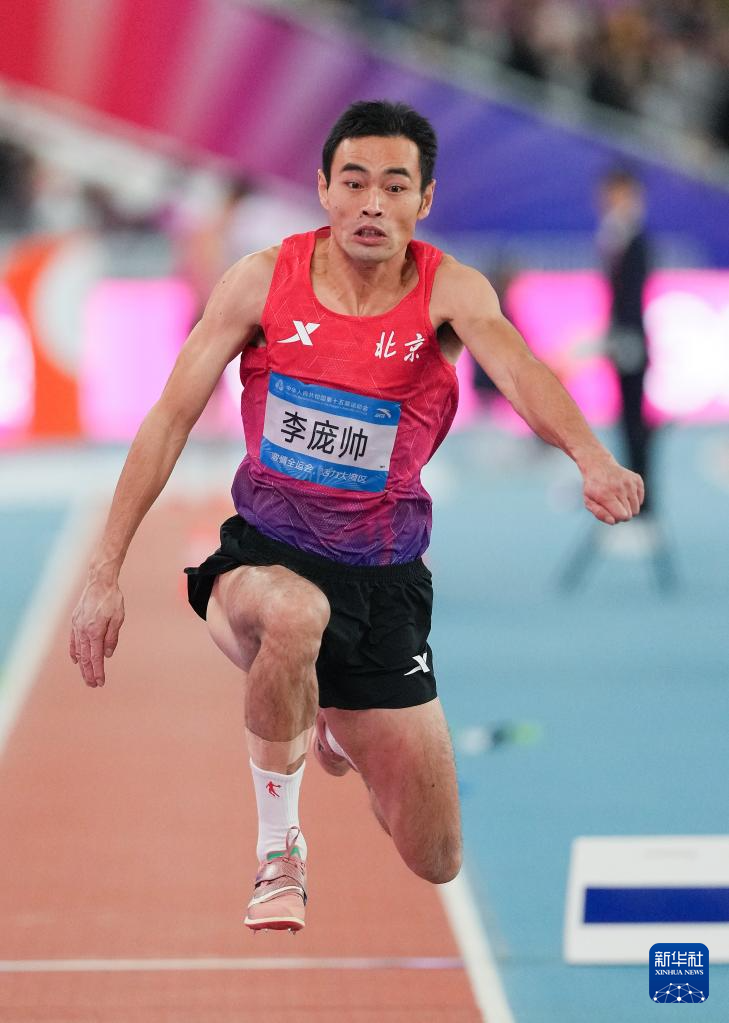 当日,第十五届全国运动会田径项目男子三级跳远决赛在广州举行。