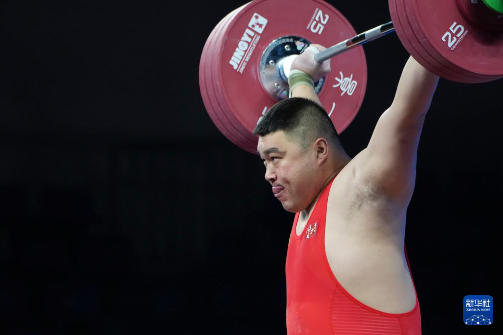 11月20日,河北队选手张喜亮在挺举比赛中。最终,他获得冠军。