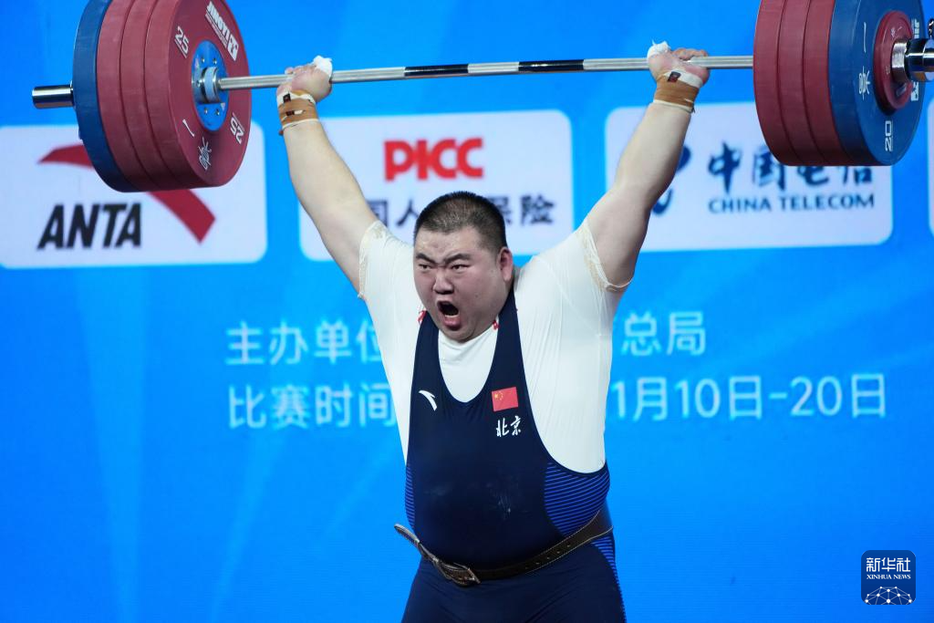 11月20日,北京队选手艾雨南在挺举比赛中。最终,他获得季军。