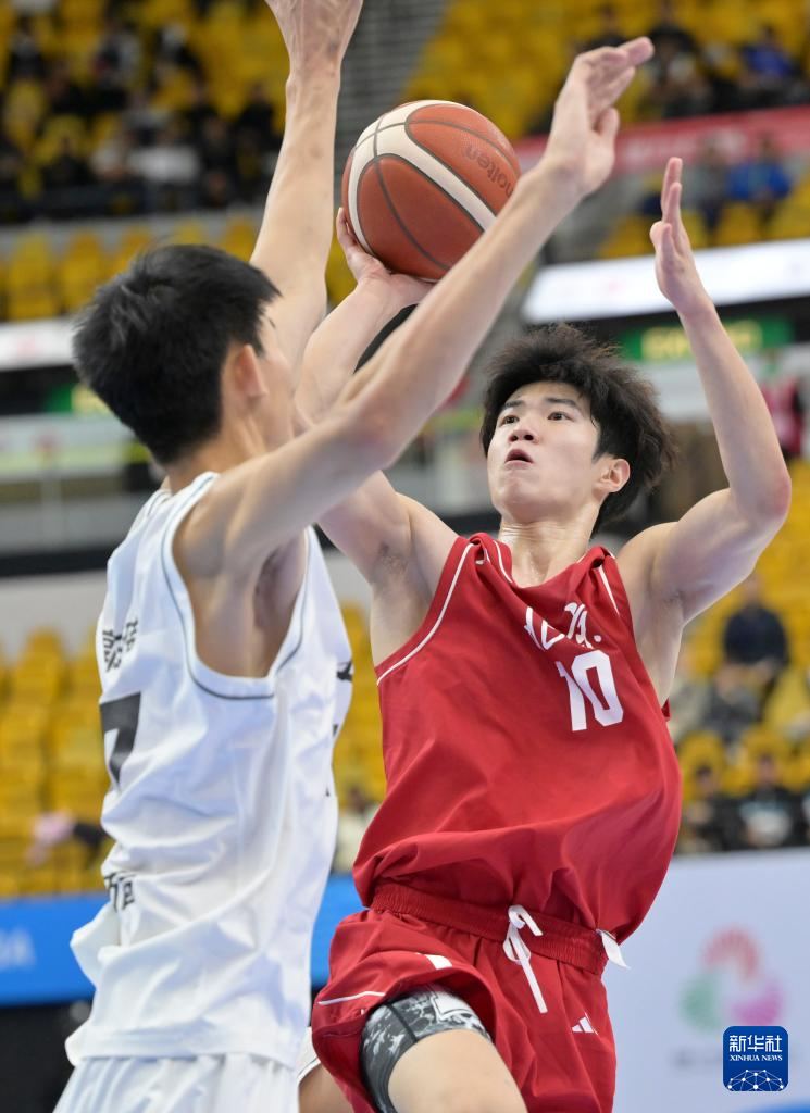 11月20日,北京队球员偰李永炜(右)在比赛中投篮。