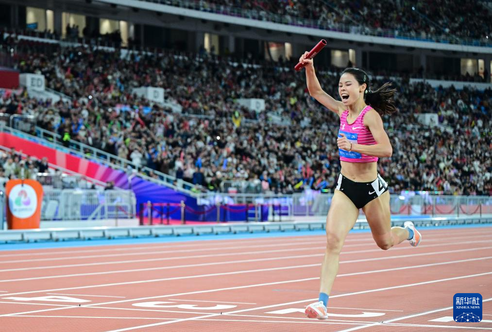 当日,第十五届全国运动会田径项目女子4X400米接力决赛在广州举行。