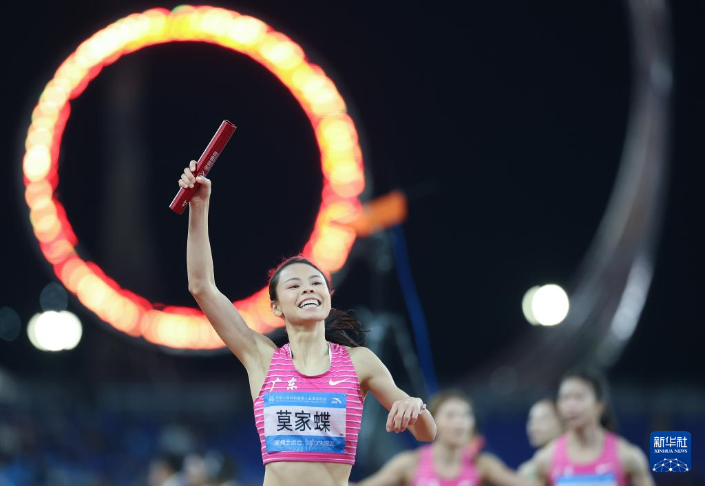 当日,第十五届全国运动会田径项目女子4X100米接力决赛在广州举行。
