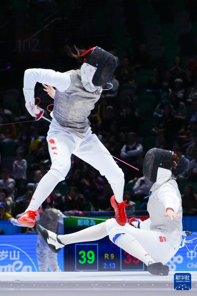 11月20日,江苏队选手王雨婷(左)和广东队选手吴培林在比赛中。