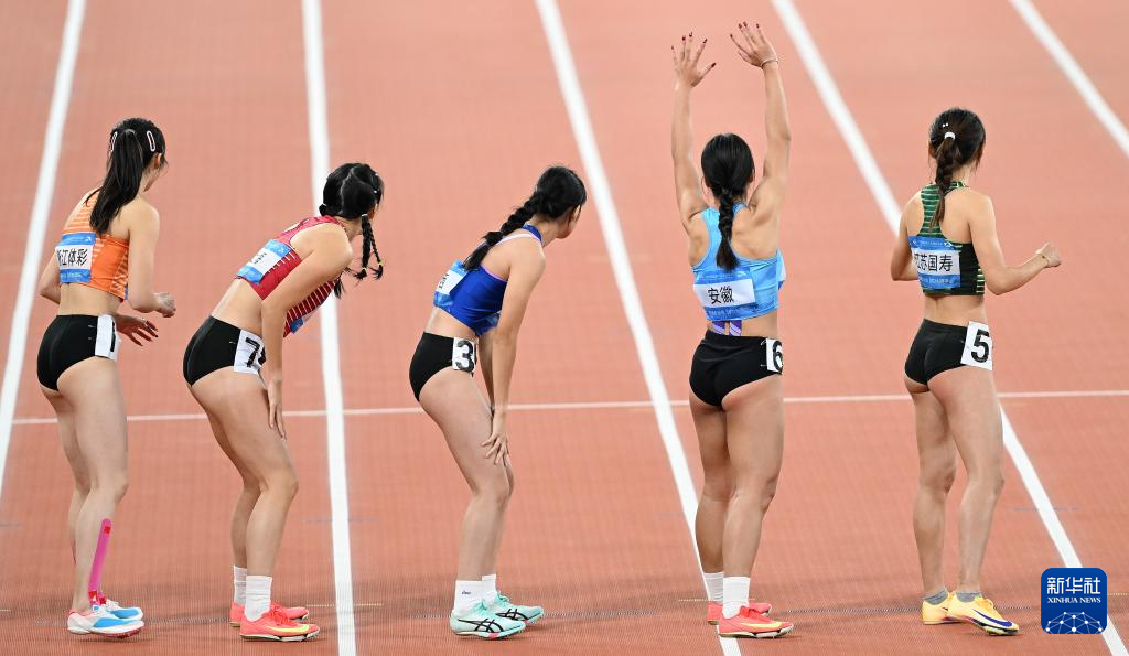 当日,第十五届全国运动会田径项目女子4X400米接力决赛在广州举行。