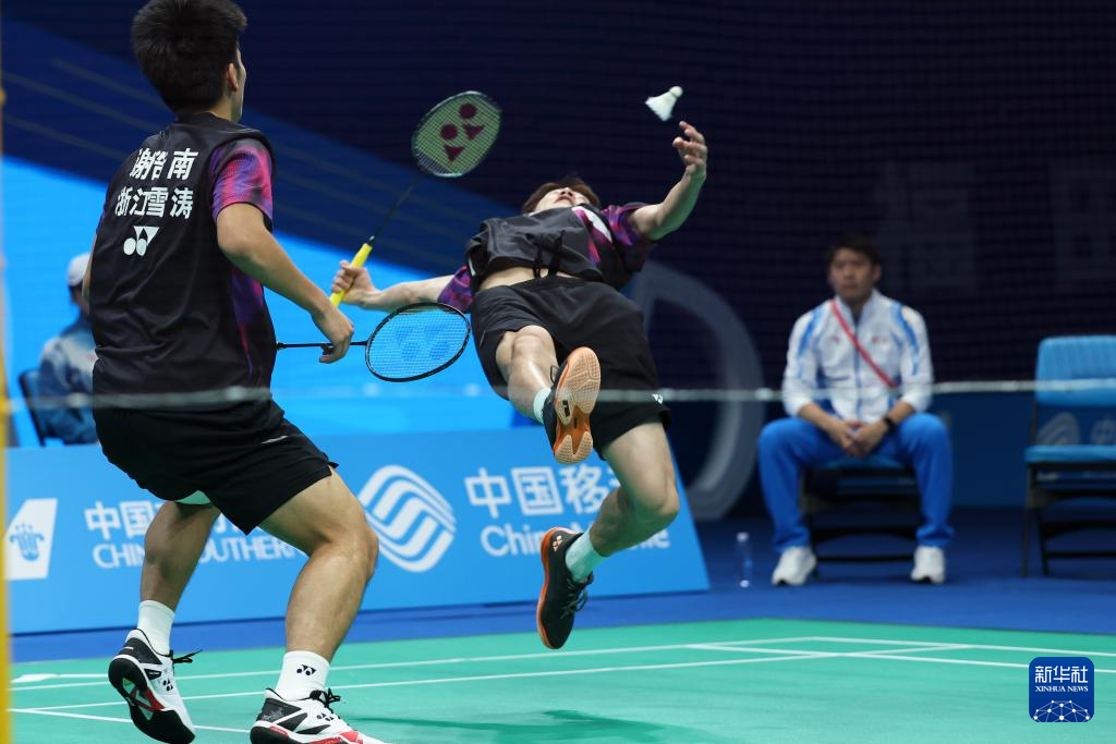 当日,在广东深圳举行的第十五届全国运动会羽毛球男子双打决赛中,安徽队组合刘阳/刘毅2比1战胜浙江队组合谢浩南/王昶,获得冠军。