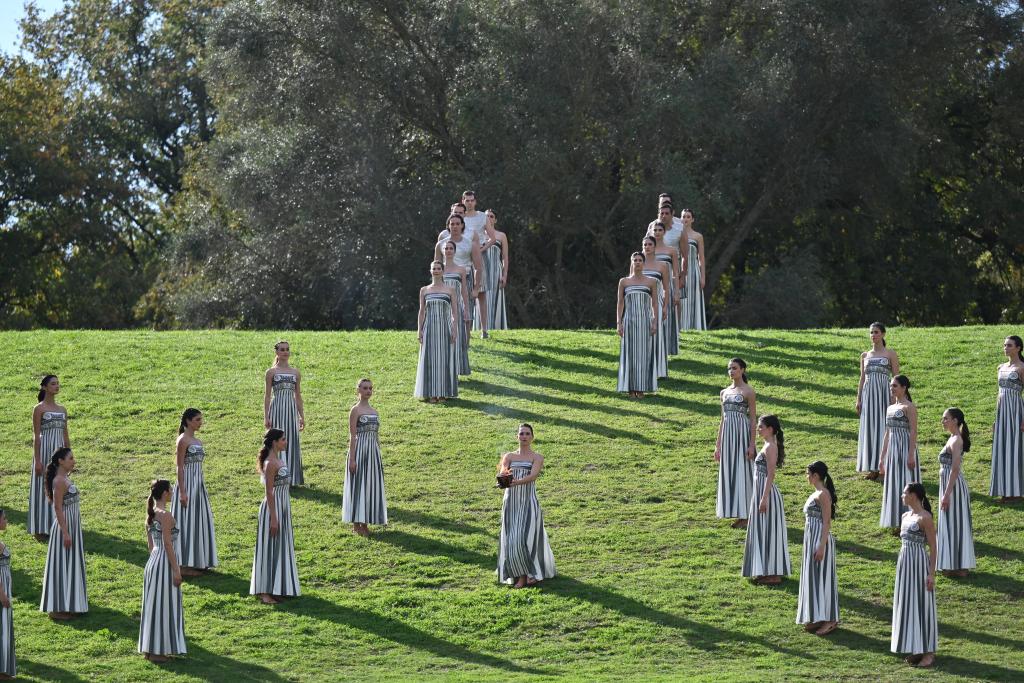 ↑11月24日,演员在圣火火种采集仪式彩排中表演。新华社记者 吕优 摄