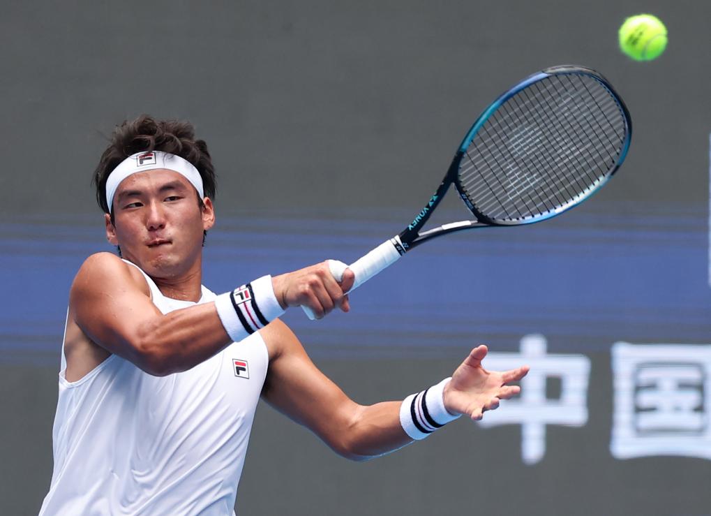 9月26日,在2025中国网球公开赛男单首轮比赛中,布云朝克特在比赛中回球。新华社发(马子涵 摄)
