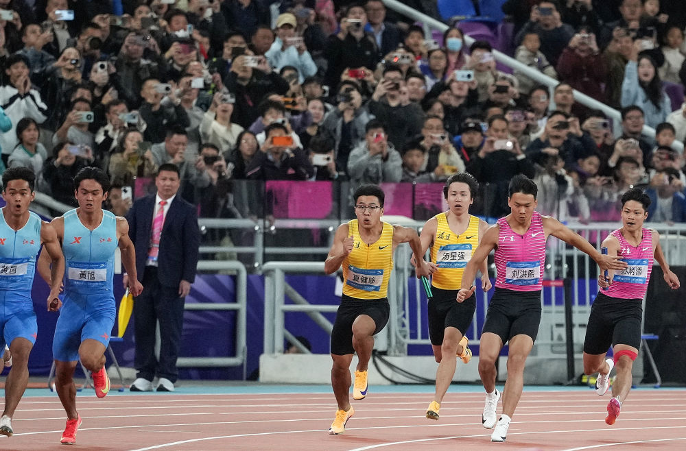 “亚洲飞人”苏炳添在全运会男子4×100米接力决赛中