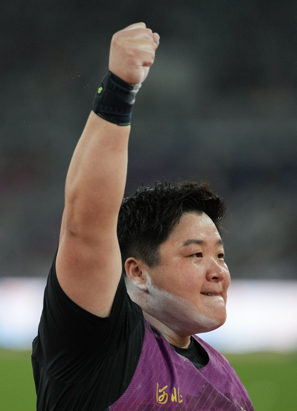 ↑11月16日,河北队选手巩立姣在第十五届全国运动会田径女子铅球决赛中,最终,她获得冠军。