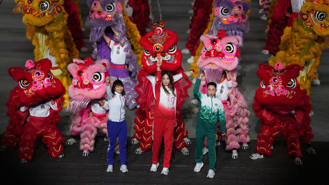 现在,交接中华人民共和国运动会会旗。有请第十五届全运会组委会主任、国家体育总局局长高志丹,第十五届全运会组委会执行主任、广东省省长孟凡利,第十五届全运会组委会执行主任、香港特别行政区行政长官李家超,第十五届全运会组委会执行主任、澳门特别行政区行政长官岑浩辉,第十六届全运会承办地湖南省省长毛伟明。[ 2025-11-21 20:34:25 ]