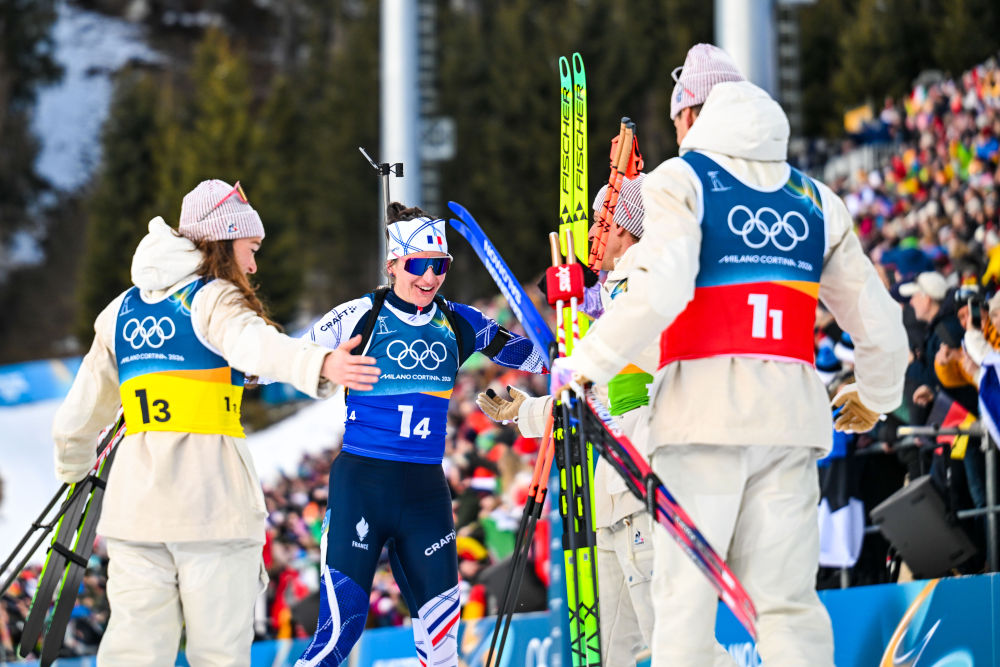 法国队的朱莉娅·西蒙在收官棒完成10发10中的稳定射击,并在赛道上展现出超强滑行实力,帮助法国队以1小时04分15秒5的成绩夺得混合接力金牌。西蒙与卢·让莫诺、康坦·菲永·马耶、埃里克·佩罗联袂出战,全队使用7发备用弹,为法国队拿下本届米兰冬奥会冬季两项的首枚金牌。