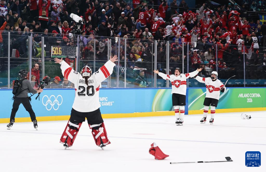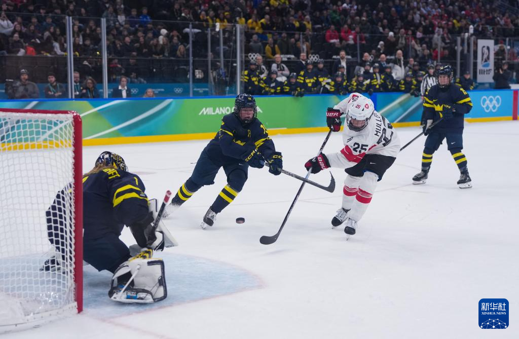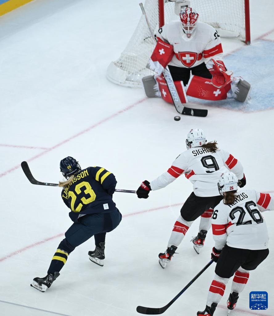 当地时间2月19日,米兰-科尔蒂纳冬奥会冰球项目女子铜牌赛在意大利米兰举行,瑞士队2比1战胜瑞典队。