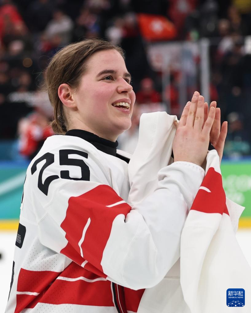 2月19日,瑞士队球员阿林娜·米勒在赛后庆祝胜利。
