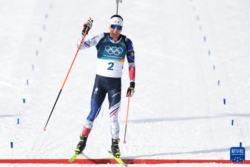 2月20日,法国选手康坦·菲永·马耶在比赛中冲线。他获得季军。