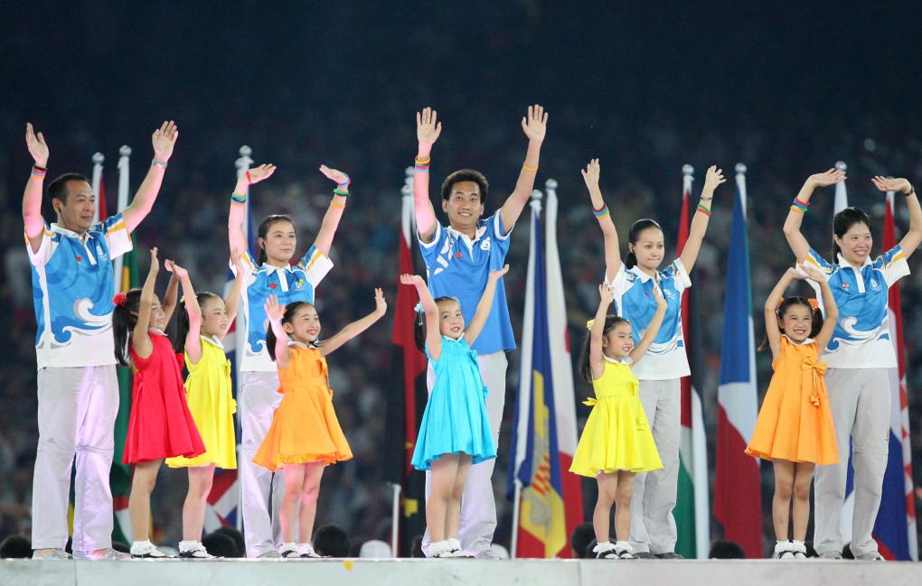 ↑2008年8月24日,第29届夏季奥运会闭幕式上,志愿者代表向观众致意。新华社记者 刘宇 摄