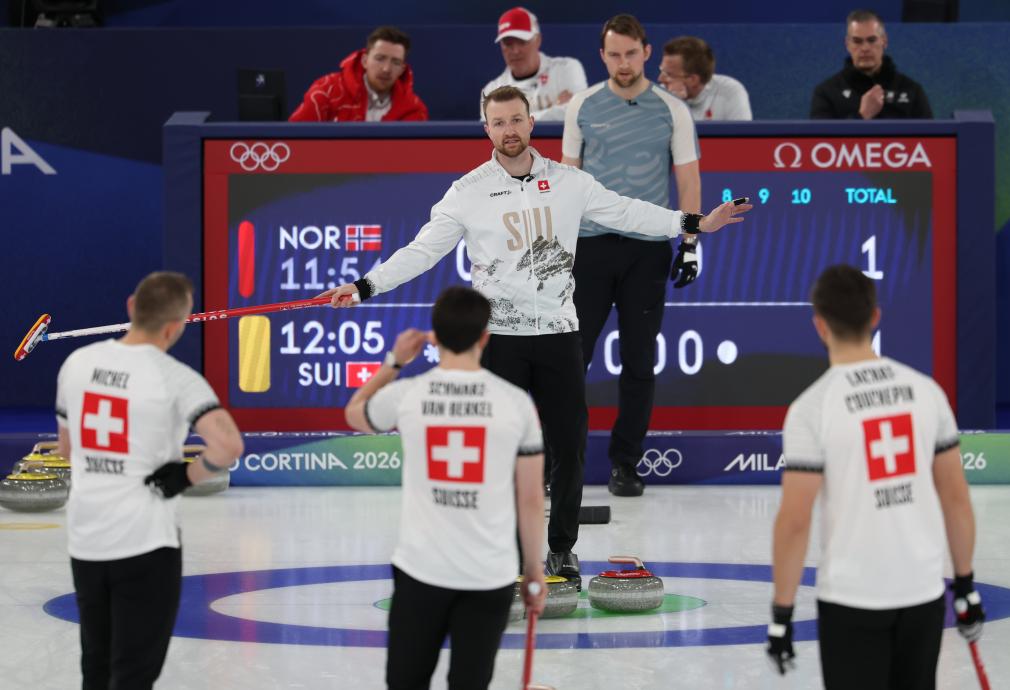 此前,瑞士队在男子冰壶铜牌争夺战中以9:1击败挪威队。