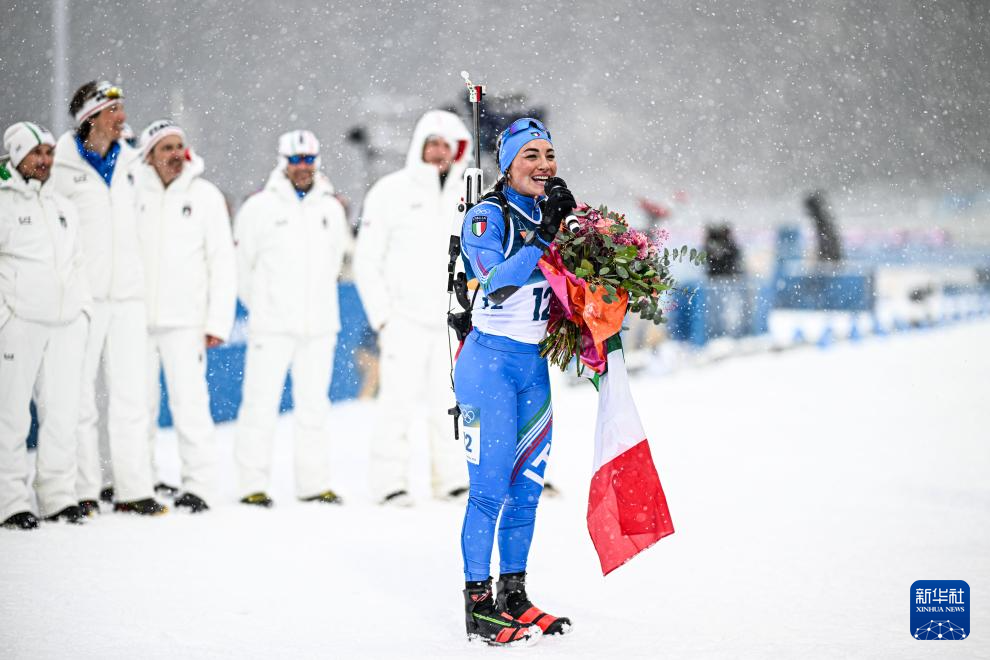 当地时间2月21日,米兰-科尔蒂纳冬奥会冬季两项女子12.5公里集体出发比赛在意大利安泰塞尔瓦举行。