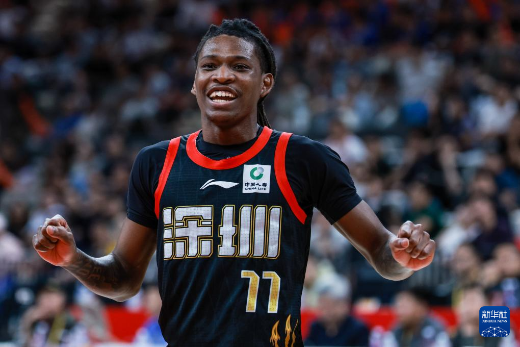 4月2日,深圳马可波罗队球员史密斯在比赛中庆祝。