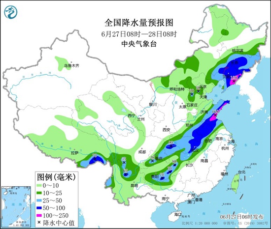 目前,北方入汛來最強降雨開啟。6月26日開始,四川盆地至華北、黃淮、東北一帶新一輪強降雨逐漸發展起來,部分地區還同時伴有強對流天氣,26日夜間,本輪強降雨進入最強時段。今天雨帶整體東移,山東、江蘇、安徽等地雨勢猛烈,同時東北地區的降雨也將明顯增強,上述地區公眾需注意防范強降雨天氣帶來的各種不利影響。