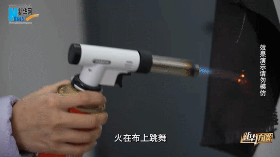 这种“扛住”的能力,在企业实验室里被反复验证:拿起一块厚度不足0.5毫米的布料,启动喷枪。喷射的高温火焰,对准布料同一点持续灼烧。十秒、三十秒、一分钟——除了有些发烫以外,布料没有冒烟,没有碳化,甚至没有变色,“烧完以后,强度也基本不丢失。”翁时铭说。