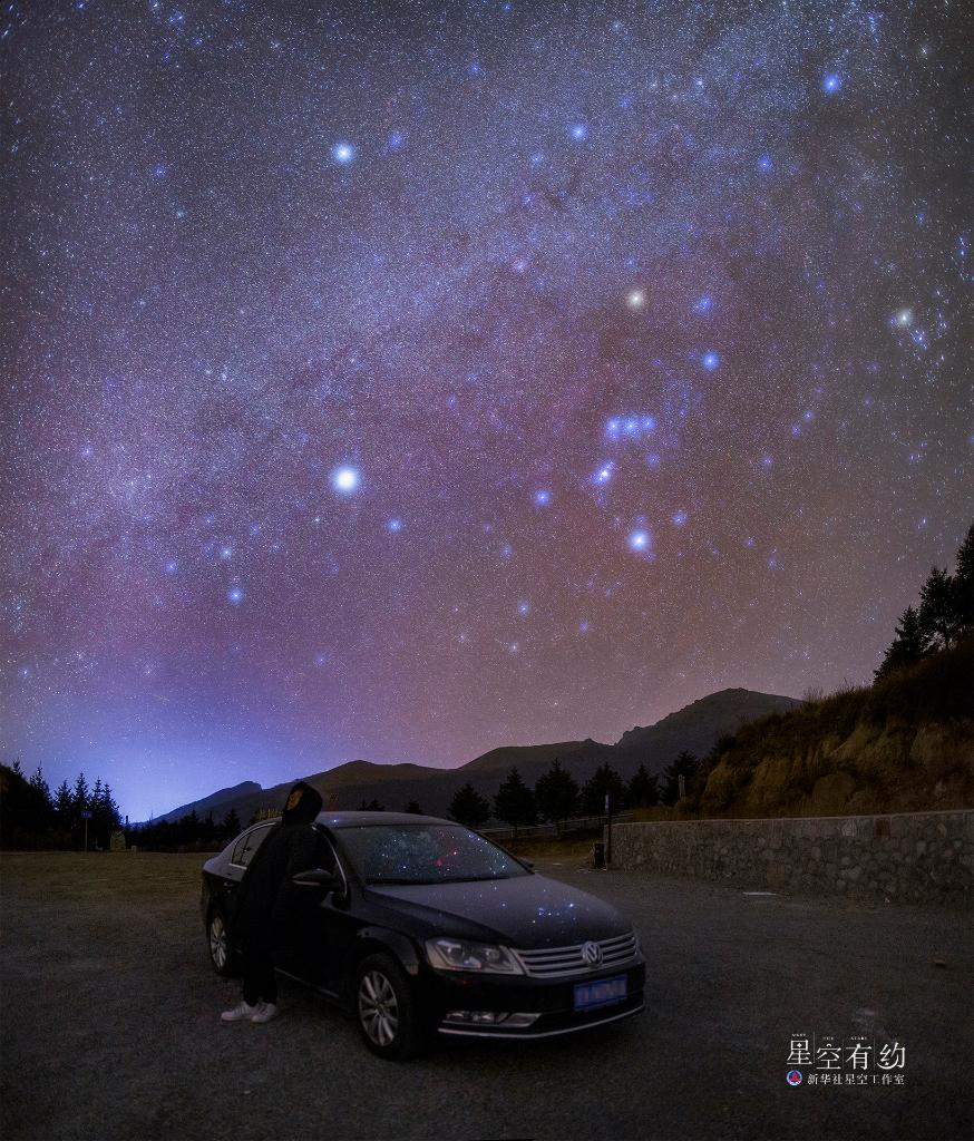 北京市天文愛好者趙衍衍2019年1月在北京東靈山拍攝的獵戶座(參宿三星清晰可見)。(星緣山風隊供圖)