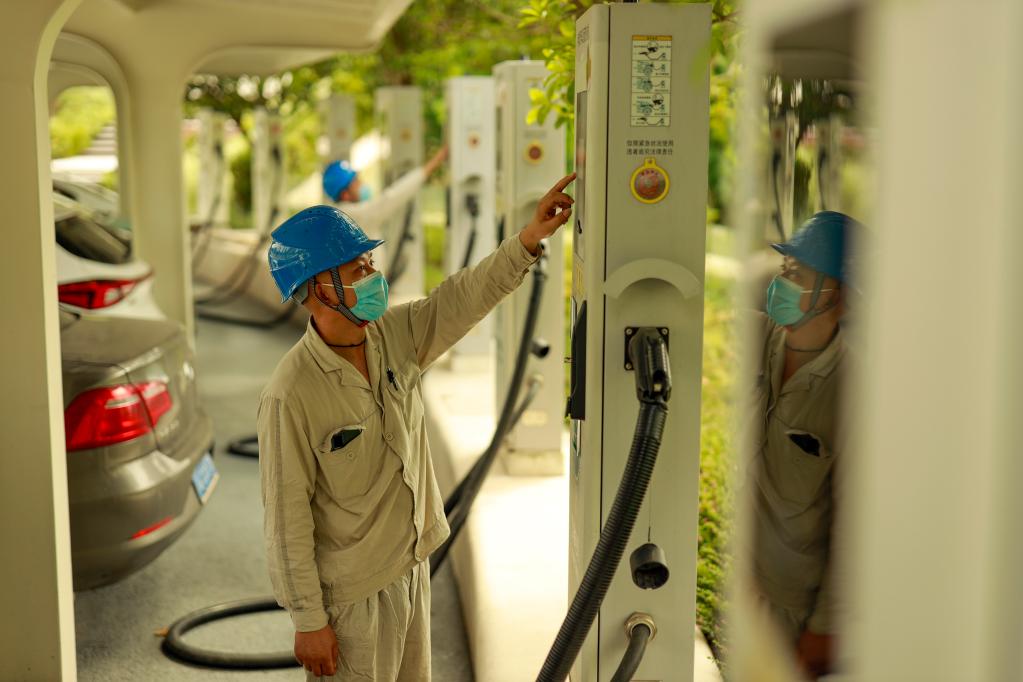 6月16日,供電公司技術(shù)人員在重慶首座光伏充電發(fā)用一體充電站進(jìn)行設(shè)備日常安全檢查。新華社記者 劉潺 攝