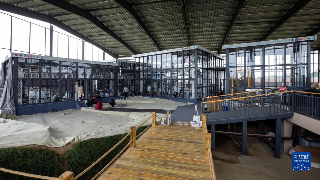 這是在位于四川省廣漢市的三星堆祭祀區考古發掘現場拍攝的4個大小不同的全透明“考古艙”(2021年3月10日攝)。新華社記者 沈伯韓 攝