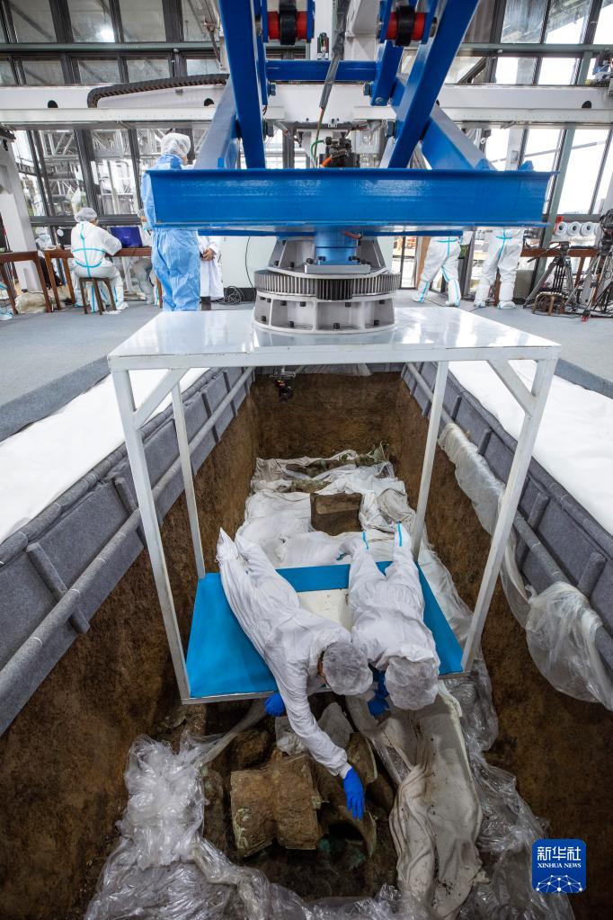 三星堆遺址發掘總領隊、四川省文物考古研究院院長唐飛告訴記者,在這樣的“考古艙”里開展發掘工作,不僅能控制發掘現場的溫度、濕度,還能減少工作人員帶入微生物、細菌等。