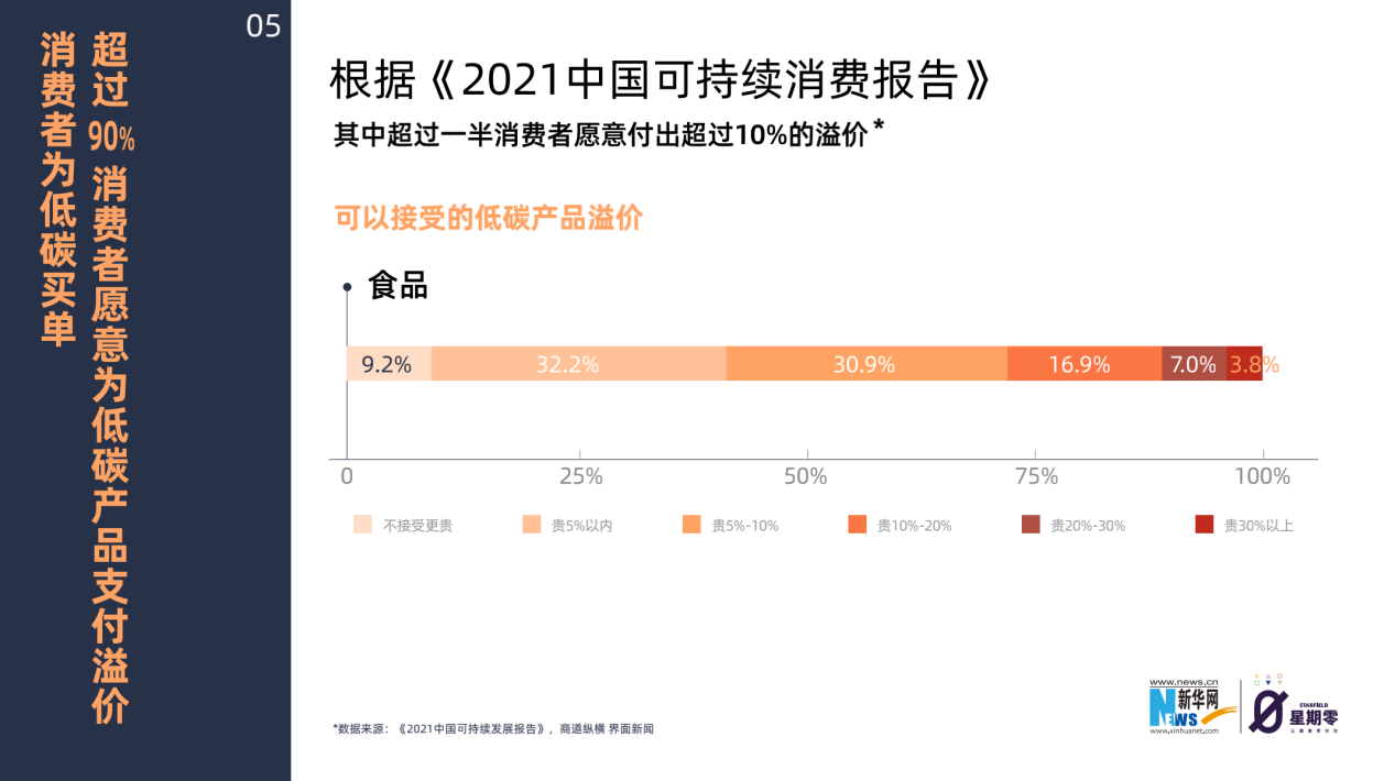 数据显示,超过90%的消费者愿意为低碳食品付出溢价且有一半以上消费者愿意付出超过10%的溢价。