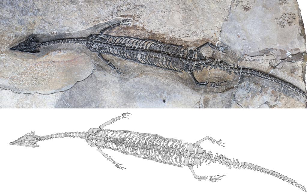 奇異羅平龍正型標(biāo)本及素描圖。(徐光輝供圖)