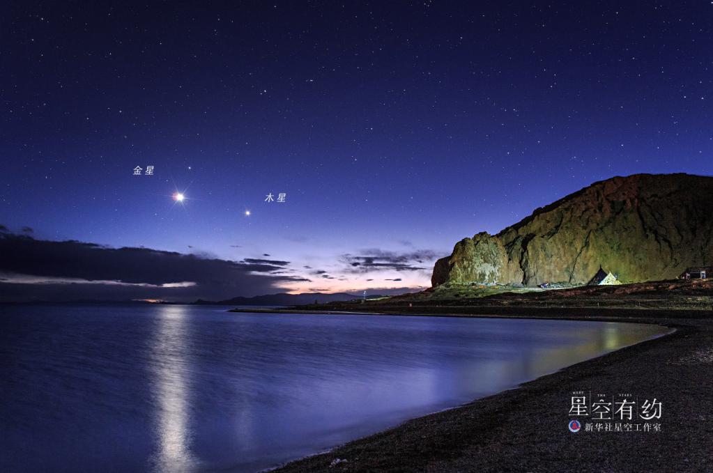 重慶市天文愛好者戴建峰2015年7月5日傍晚在西藏納木錯拍攝的金木相伴。(本人供圖)