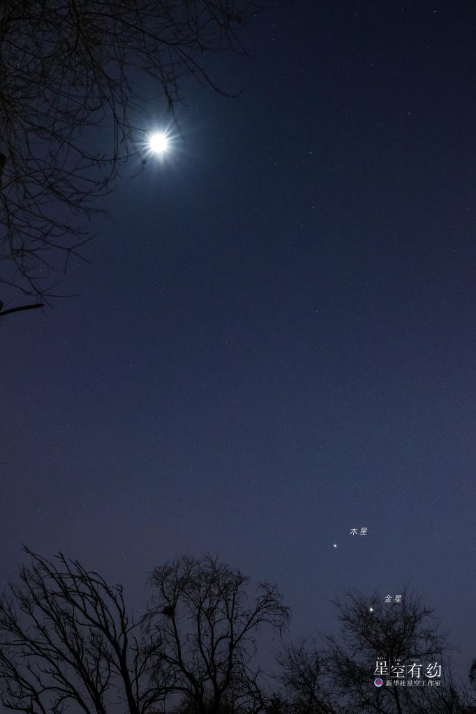 “因為距離太陽和地球比較近,金星運行的速度較快,而木星距離太陽和地球比較遠,運行的速度稍慢,所以在本次相合之后,這兩顆行星會‘分道揚鑣’,看起來漸行漸遠。如果這段時間里能夠堅持每天在同一時間對它們進行拍攝的話,就能發現它們的運動軌跡呈一個‘X’形。”修立鵬說。