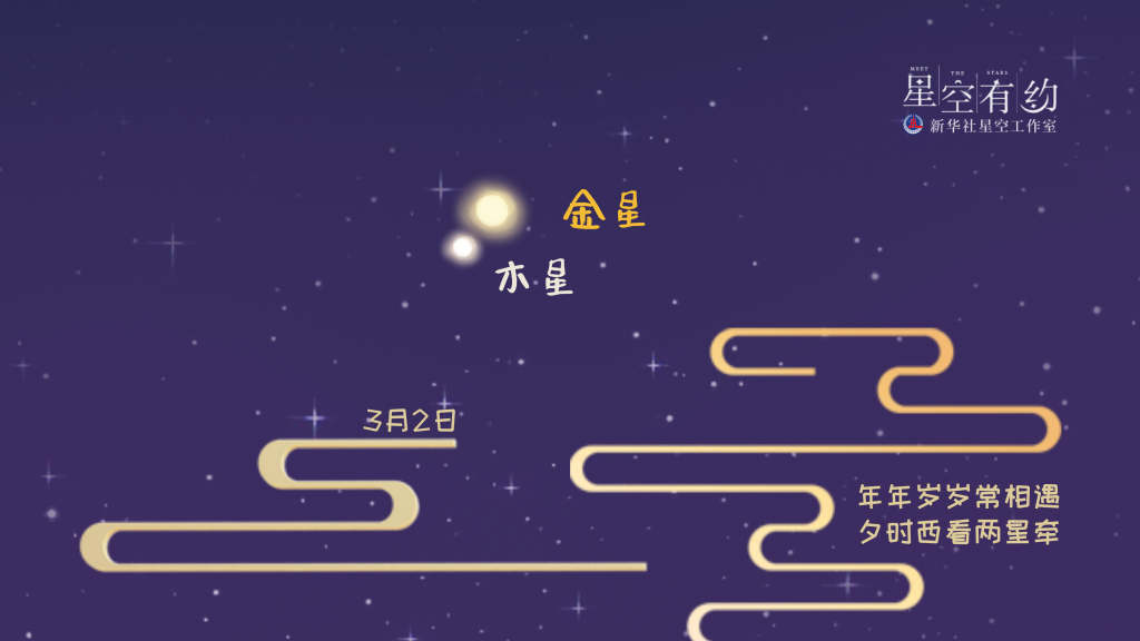新華社天津2月28日電(記者周潤健)夜空中“最亮”的兩顆星星——金星與木星“浪漫相擁”是一種怎樣的視覺感受?機會來了。3月2日傍晚時分,這兩顆明亮的天體會在西方天空近距離相合,上演“星星相吸”。